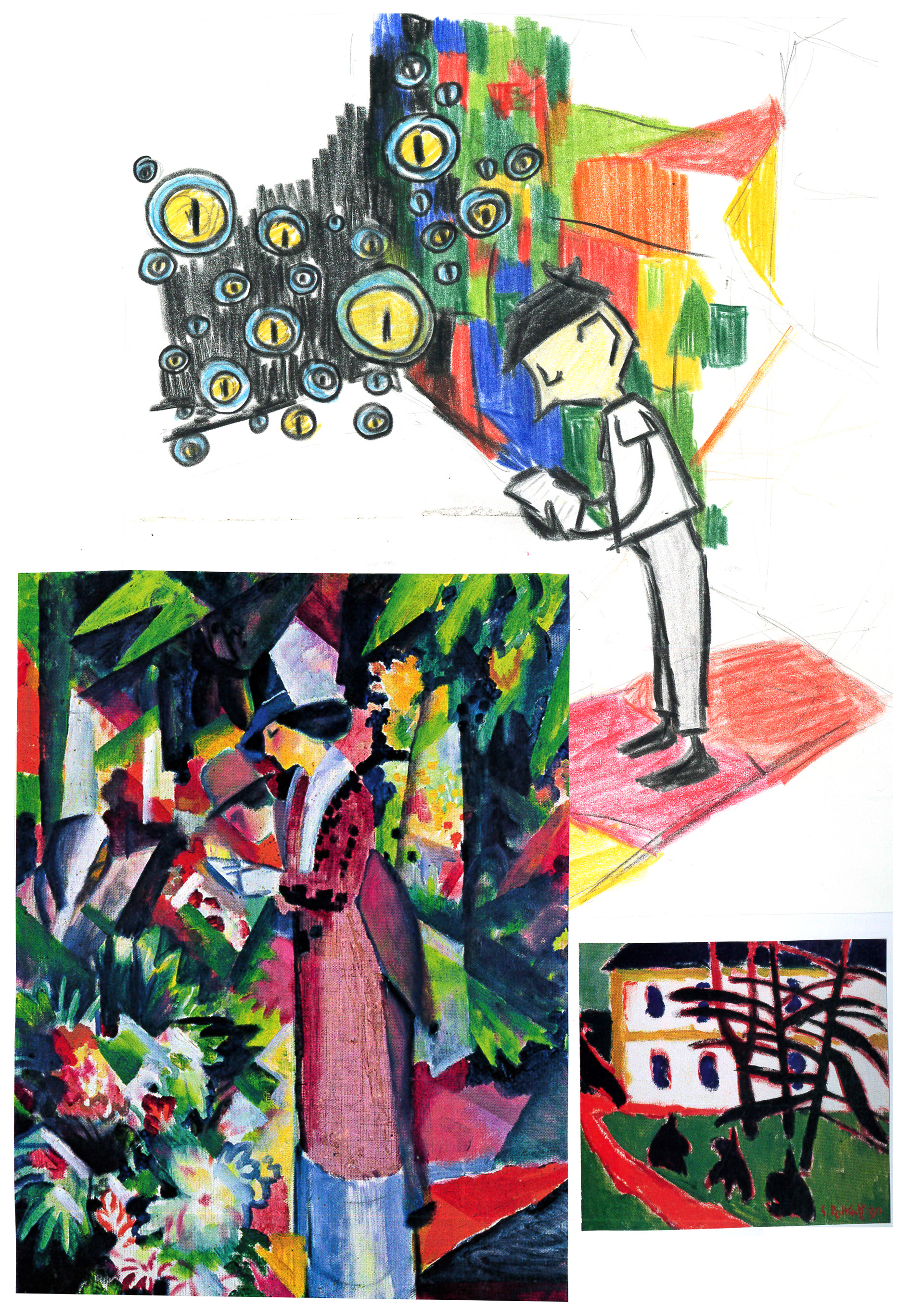 The film focuses on the boy’s feelings of fear and loneliness and the creation of a world in which the audience can share what the boy sees and feels, mirroring the boy’s vivid imagination. I therefore enjoyed concentrating not so much on the storyline, but on attaining an empathetic and fearful mood and atmosphere through visual language. Chattering crows with staring eyes represent the expectant crowd of people around the boy, a barking dog represents the father’s anger forcing the boy to sing, the father being represented through blue colours.