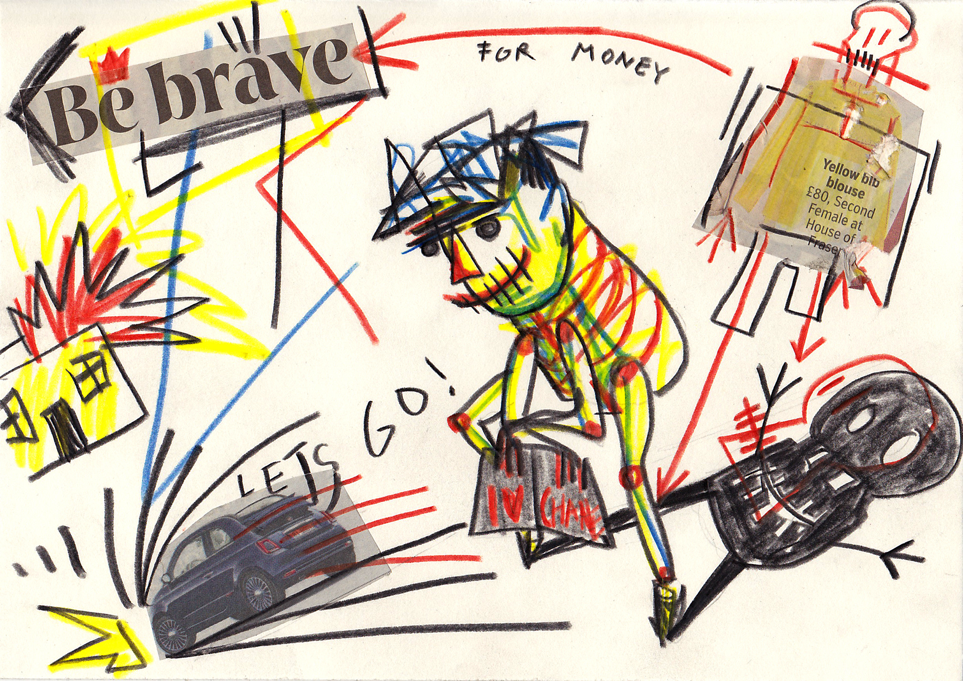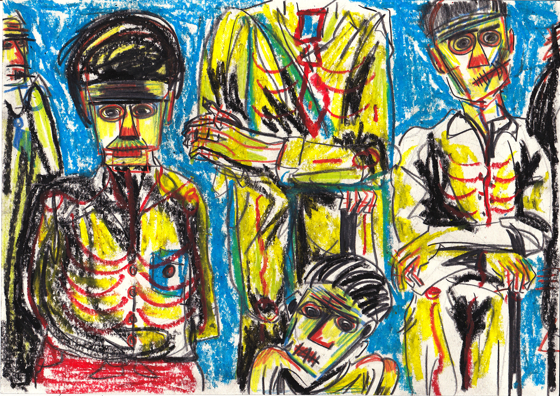 A confluence of confusion, chaos, intensity and surrealism, mixed with tense lines, rough paints and spontaneous words.