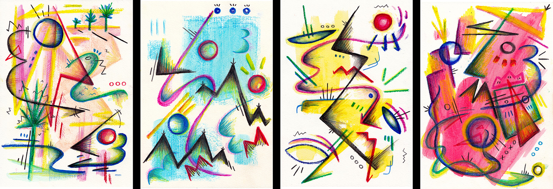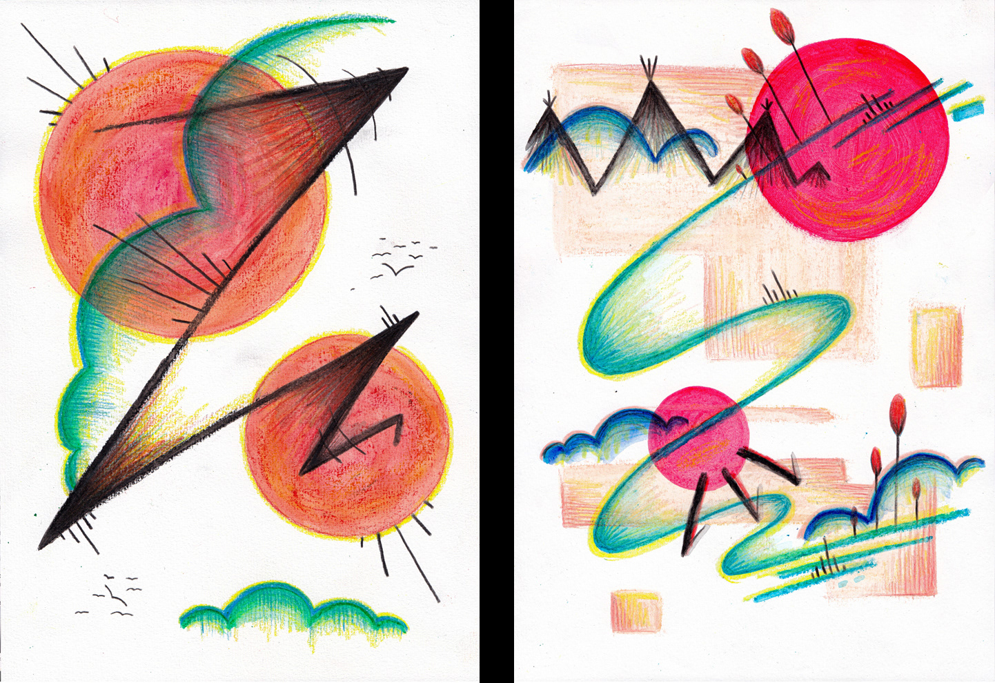 Watercolour Paints, Watercolour Pastels, Colouring Pencils on Pastel Paper